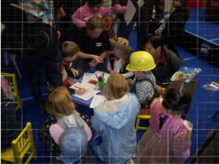 Die kleinen Fans beim Malen ihrer Hörspielhelden |